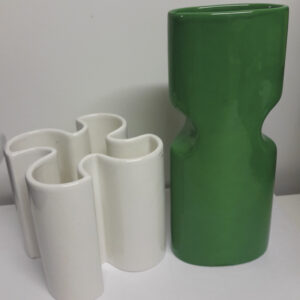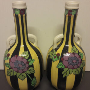 Asta scadutaDue bottiglie in ceramica a smalti policromi a bande e motivo di fiori e foglie. H. 25 cm circa, modello D 681, in ottimo stato. Produzione ceramiche Boch La Louvière – BelgiumTimbro della manifattura sotto alla base