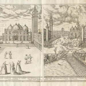 Asta scadutaD. Marci accuratissima effiguratio. Depinxit Georgius Houfnaglius Anno 1578. Palatii Senatorii apud Venetos conflagratio Due incisioni in rame su di un foglio, 42,5 x 56 cm, lievi gore dsacqua ai margini che non intaccano le incisioni