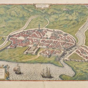 Asta scadutafoglio 40,5 x 52,3 cm, tratta da sCivitatis Orbis Terrarums, al retro testo, foglio piegato in 2 parti, lievi piegature, lieve brunitura della carta in basso al centro del margine che non interessa lsincisione