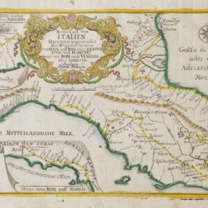 Asta scadutaDarinnen angemercket. Die Wege und Strassen von Nizza auff Rom uber Genova, Luca und Florentz Grund von Rom nach Venedig uber Loretto Incisione in rame col. a mano, 20,2 x 32,5 cm entro passepartout, presenza di nastro adesivo al margine superiore, per il resto in ottimo stato
