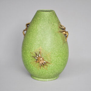 In ceramica smaltata verde con ragni a rilievoin foglia d?oro, h. 40 cmProvenienza: Collezione privata