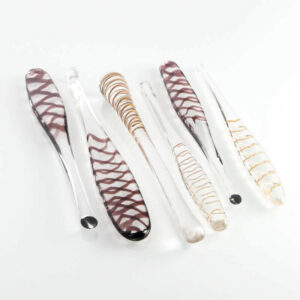 in vetro trasparente con filo in vetro ametista e crema, cadauna circa 32/35 cmProvenienza: Collezione privata