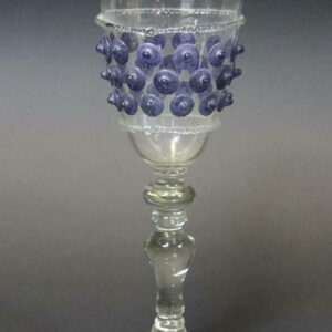 Transparentes Glas mit Stiel, Heiáapplikationenmit blauem Glas und Glasfäden, H.22,5 cmProvenienz: Privatsammlung