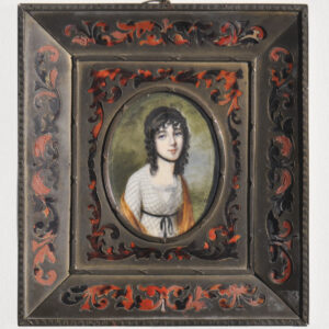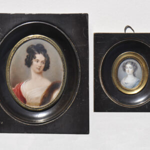 Guazzo su avorio, 8 x 6,2 cm, cornice d'epocaSul retro scritta: Fürstin MetternichA corredo: piccolo ritratto a miniatura di una donna giovane, 1800 ca.