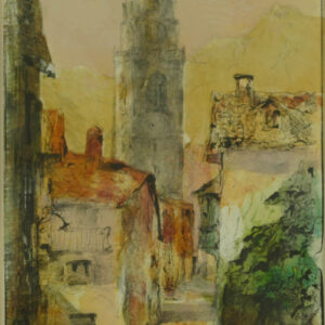Acquarello su carta, 15,5 x 47 cm, in cornice. Firma.