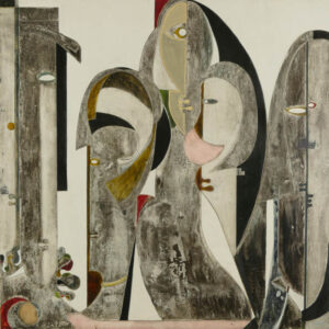Tecnica mista su tavola, 100 x 100 cm, in cornice. Firma e data.