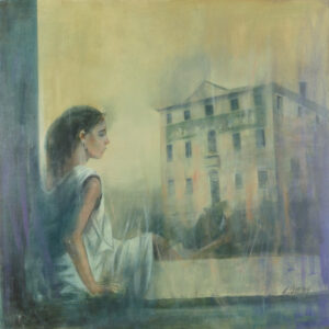 Tecnica mista su tela, 70 x 70 cm, in cornice. Firma.