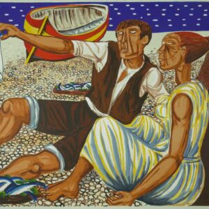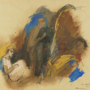 Tecnica mista su carta, 58 x 76 cm, in cornice. Firma, titolo e data