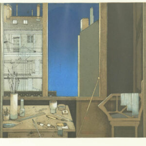 Litografia a colori su carta, 43,5 x 28 cm, in cornice. Firma, data e numerazione (31/100)
