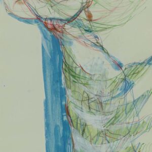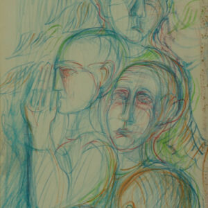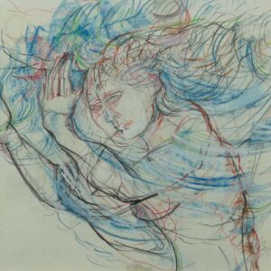 Matite colorate su carta, 20 x 26 cm, in cornice. Firma