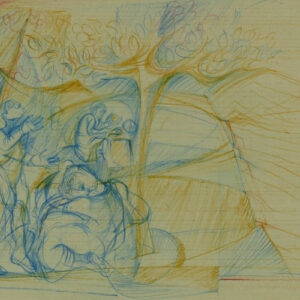 Matite colorate su carta, 36 x 21 cm, in cornice. Firma, titolo e data