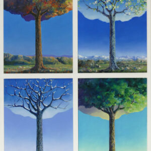 Olio su tela, 4 elementi incorniciati, cad. 40 x 30 cm, 83 x 62 cm, in cornice. Firma e data