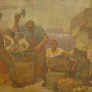 Tempera su cartoncino, 19 x 50 cm, in cornice. Firma e data, leggermente danneggiato (piccole scheggiature).