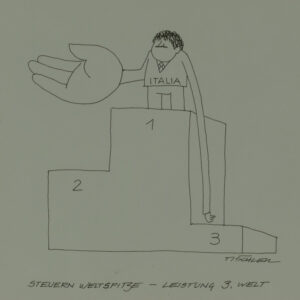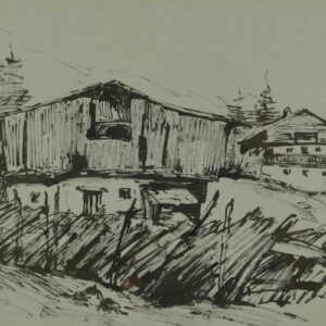 Disegno a china su carta, 17 x 19,5 cm, in cornice. Firma e titolo, data sul retro