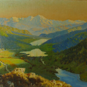 Olio su tela, 60 x 110 cm, in cornice. Firma e data