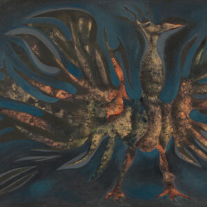 Tecnica mista su carta, 58 x 69 cm, in cornice. Firma, titolo e data