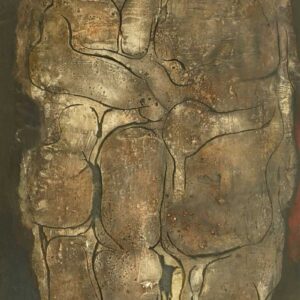 Tecnica mista su gesso su legno, 120 x 70 cm, in cornice. Firma e data