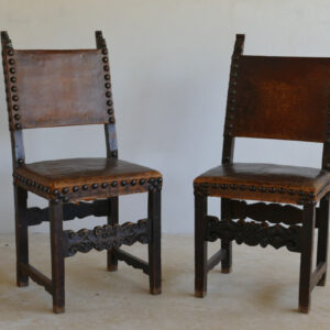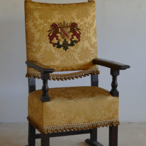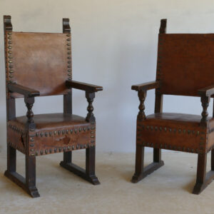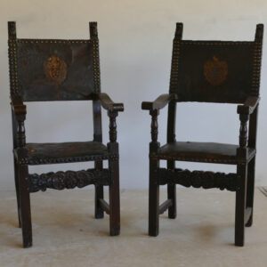 con stemmi impressi in pelle, 133 x 61 x 53 cm. Tracce di usura sulle sedute