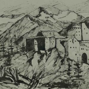 Acquarello su carta, 21 x 31 cm, in cornice. Monogramma e titolo.