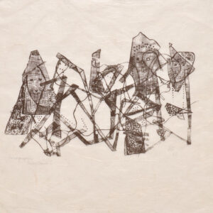 Incisione su linoleum, 21,7 x 12 cm(entro il passepartout)Firma autografa