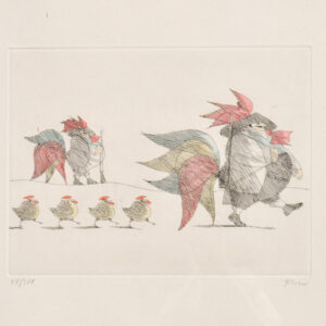 Acquaforte colorata, 21,5 x 24,5 cm (Lastra),43,5 x 39,5 (foglio), in corniceFirma autografa e numerazione (29/200)