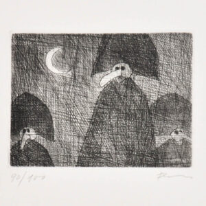 Acquaforte, 8,5 x 10,7 cm (lastra),26,3 x 27,5 cm (foglio)Firma autografa e numerazione (90/100)