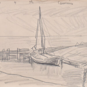 Lyonel Feininger – Barca in riva al mare, 1932Matita su carta, 14,5 x 18 cm, al retro iscrizione manoscritta "disegno autentico di Lyonel Feininger. L.F"DataBibl.: Lux Feininger, M.Scudiero, F. Degasperi (a cura di), Lyonel Feininger, Catalogo della mostra edito dalla Galleria il Castello di Trento in occasioni dell'esposizione di disegni e acquerelli del 1991Provenienza: Gia collezione Laurence Feininger, collezione privata