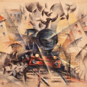 Roberto Marcello Baldessari – Treno + citta, 1916Matita, carboncino e tempera su cartoncino, 33 x 43 cmFirmaL'opera è accompagnata da autentica su fotografia di Maurizio Scudiero datata Rovereto 5 marzo 2023 e archiviata nella sezione "DIPINTI" del Catalogo GeneraleRagionato delle Opere dell'Artista con il seguente numero d'ingresso: B16 -126Provenienza: Collezione privata"Rientra negli studi di velocità che, specie nel biennio 1916 - 1917,…