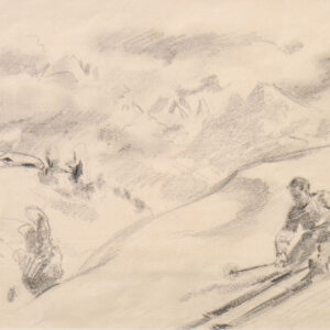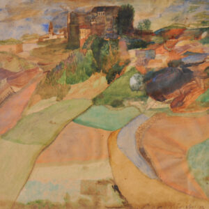Thomas Ender/Conrad Gaefe – Vista nei dintorni di Castel Tirolo, 1867 ca.Da: Album der deutschen Alpen Cromolitografia, 43,5 x 55,5 cm (con foglio di supporto), in corniceNach der Natur von Thomas Ender, Lith. von Conrad Graefe, stampa e editore Verlag Reiffenstein & Rösch Vienna