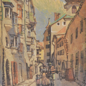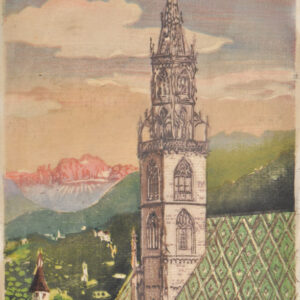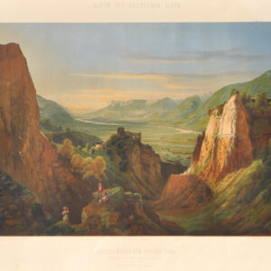 Thomas Ender/Conrad Gaefe – Vista nei dintorni di Castel Tirolo, 1867 ca.Da: Album der deutschen Alpen Cromolitografia, 43,5 x 55,5 cm (con foglio di supporto), in corniceNach der Natur von Thomas Ender, Lith. von Conrad Graefe, stampa e editore Verlag Reiffenstein & Rösch Vienna