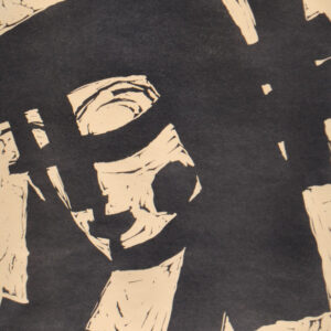 Incisione su linoleum, 15,5 x 16,7 cm (entro il passepartout)Firma autografa