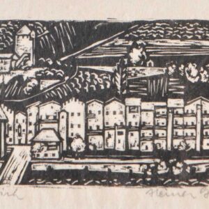Xilografia colorata, 14,3 x 31,5 cmIncisione su legno, 16,2 x 16,2 cm (entro il passepartout), in corniceFirma e data, monogramma nella lastra