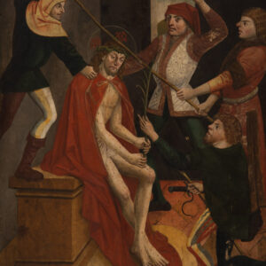 Brixner Maler/Pittore Bressanone um 1490 / Umkreis von Hans Klocker – Flaggellazione di Cristo, 1490 ca.Tempera su tavola, 103 x 86 cm, restaurato, piccoli ritocchi, piccole mancanze di colore, in corniceSul retro residui di coloreProvenienza: collezione privata BolzanoRingraziamenti al Dr. Leo Andergassen per le osservazioni