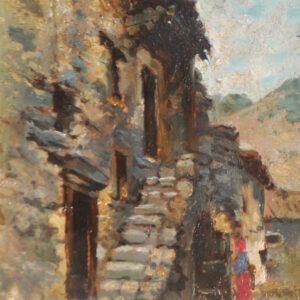 Guglielmo Ciardi – Casolare nel CadoreOlio su cartone, 14 x 22,5 cm, al retro timbri Galleria d'arte Cristallo Cortina, Dr. Emilio Sasso Milano e iscrizione manoscritta "questo delizioso dipinto Casolare nel Cadore è autentico di Guglielmo Ciardi. Linda Rita Ciardi. Treviso 25/9/1972"Provenienza: Galleria Bentivegna, ivi acquisito dall'attuale proprietario