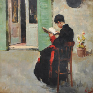 Vincenzo Irolli – Seminarista in letturaOlio su tela, 40 x 39 cm, al retro etichetta Galleria Bentivegna Montecatini Terme e dichiarazione di autentica di Sandro BentivegnaProvenienza: Galleria d'arte Sandro Bentivegna Montecatini Terme, ivi acquisto dall'attuale proprietario