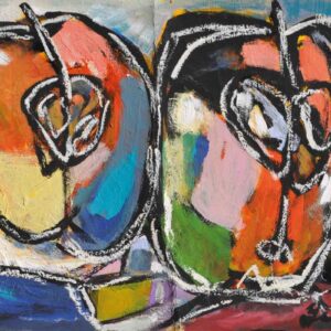 Tempera su cartoncino, 32 x 42 cm, piega alcentro, in corniceMonogramma