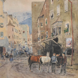 Acquerello, 33,8 x 24 cm, in corniceFirmaA corredo: Villaggio nella valle dellsInn,1916, acquerello, firma e data