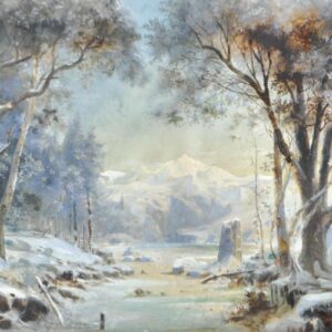 Josef Kriehuber – Al lago Offensee nellautunno del 1864L' imperatore Francesco Giuseppe I. con gruppo di cacciatori davanti a paesaggio alpino con casolare di caccia a Offensee presso EbenseeLitografia, 60,5 x 80 cm, macchie fuori dallimmagine, in corniceIndicazione: Gemalt n. d. Natur von Josef Kriehuber / Druck Jos. Stoufs, Wien