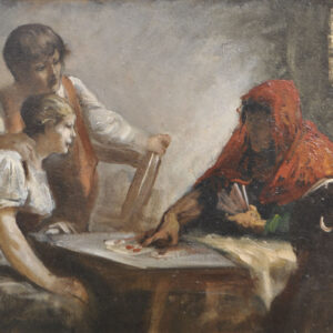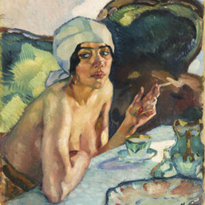 Leo Putz – La ballerina Mara Aranaz che fuma al tavolo, 1922 ca.Olio su tela, 76,5 x 70 cm, in corniceFirmaMembro della Secessione di Monaco, collaboratore della rivista Jugend, membro dellassociazione Scholle, uno dei più importanti esponenti della pittura a Monaco intorno al 1900.