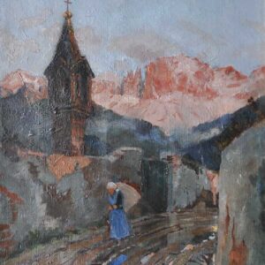 Olio su tela, 67,5 x ca. 180 cm, in corniceK. Th. Hoeniger, Südtiroler Volksleben in 170 Gemälden und Zeichnungen von Albert Stolz, Bolzano 1950, ill. p. 81Figlio di Ignaz Stolz sen., fratello di Ignaz e Rudolf Stolz, studio presso l’accademia di Vienna (prof.Alois Delug), 1904 e 1906 viaggi di studio in Italia, popolare pittore della…