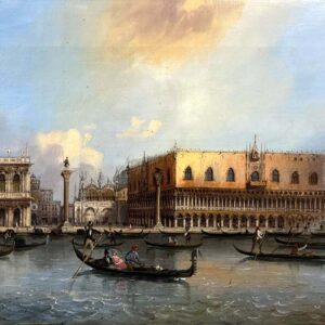 Olio su tela, 26 x 43,5 cm, in corniceFirma, data al retroFiglio di un capitano della marina mercantile di origini montenegrine, dal 1818 studiò all’Accademia di Belle Arti di Venezia con Teodoro Matteini. Eccellente rappresentante della pittura vedutistica veneziana del XIX secolo, incentrata sulla riproduzione precisa, nella tradizione di Canaletto e Guard