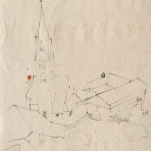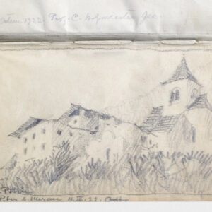 Asta scadutaMatita su carta velina, 11,7 x 16,5 cm, il disegno ਠincollato al bordo superiore (facilmente removibile) nell'antiporta del libro di Heinrich Mann, Die kleine Stadt, Kurt Wolff Verlag, LeipzigFirma, titolo e data