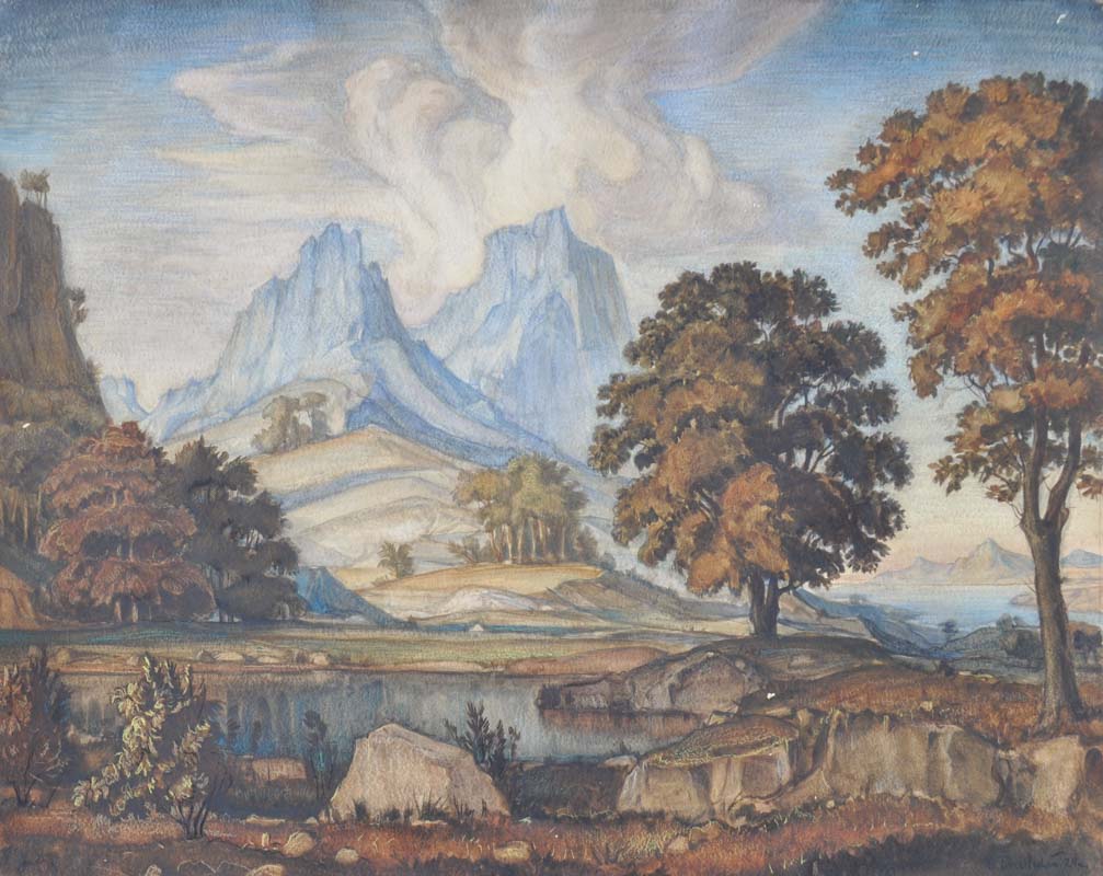 Acquerello su carta, 67,5 x 85 cm, al retro etichetta in cirillico “Comitato del Dipartimento russo della XIV Esposizione Internazionale d’arte di Venezia”