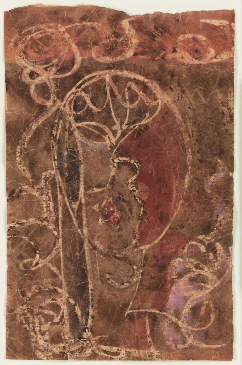 Monotipia con tempera e gessetti su carta stropicciata, 35 x 22,3 cm