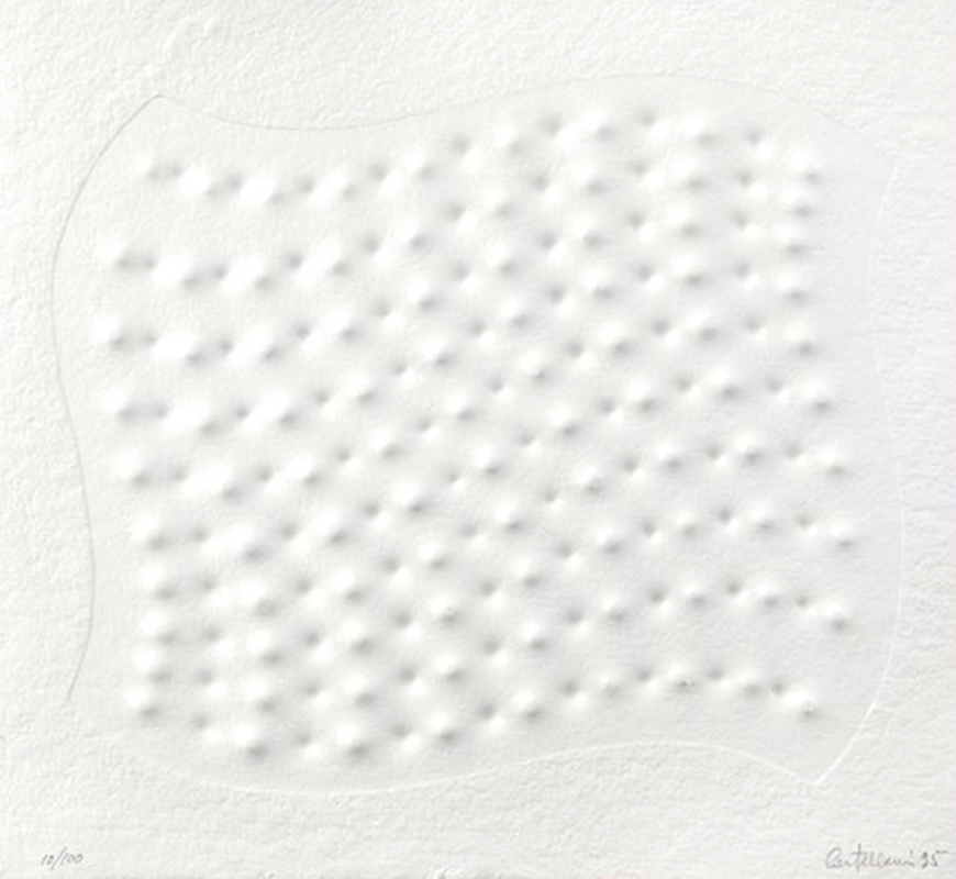 Cartella di tre opere realizzate per il volume Enrico Castellani opera grafica 1960 1995, stampatore: Di Tommaso Roma – editore: Corraini Mantova