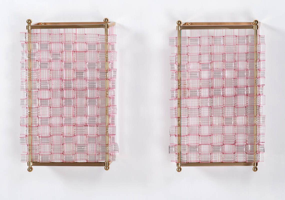 Listelli lineari e ondulari in vetro zigrinato trasparenti color rubino,