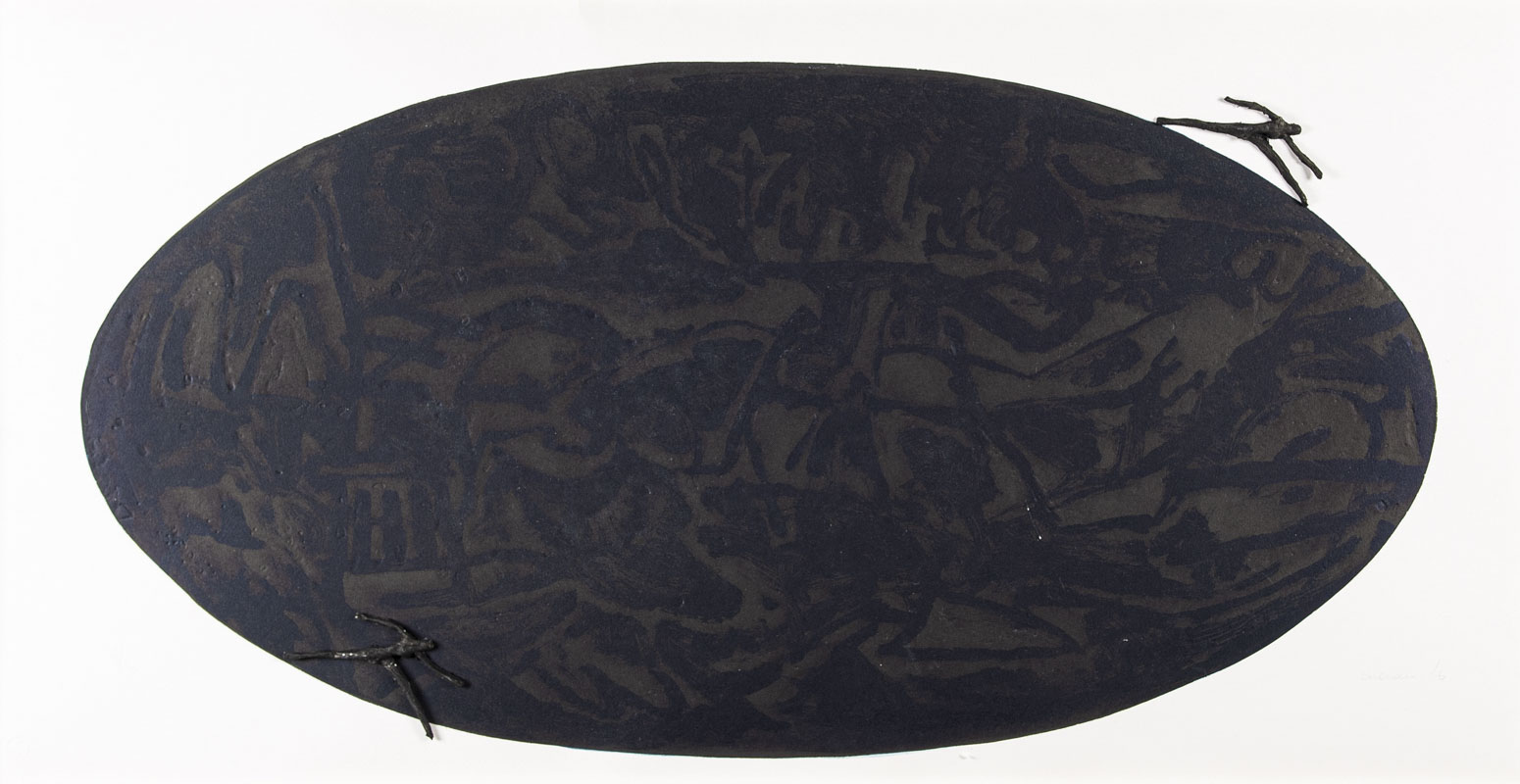 Litografia e cartapesta su carta, 54,5 x 108 cm