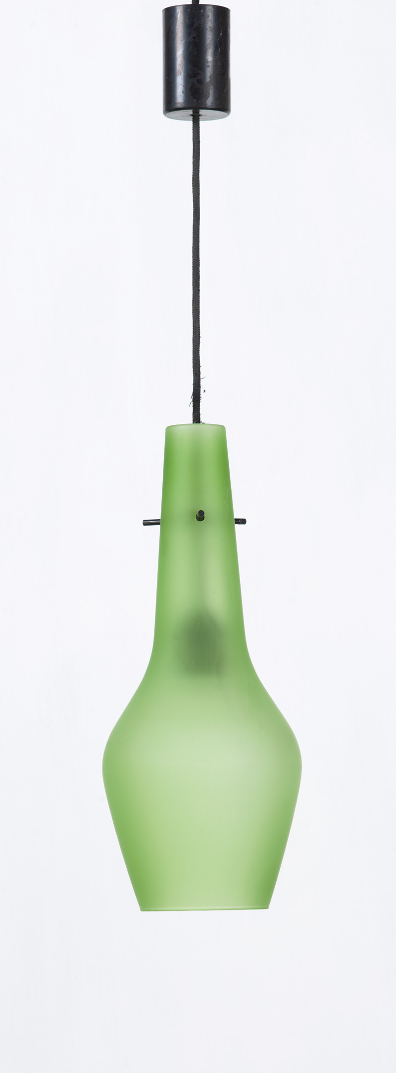 In vetro opaco verde, H. 85 cm, corpo illuminante H. 45 cm