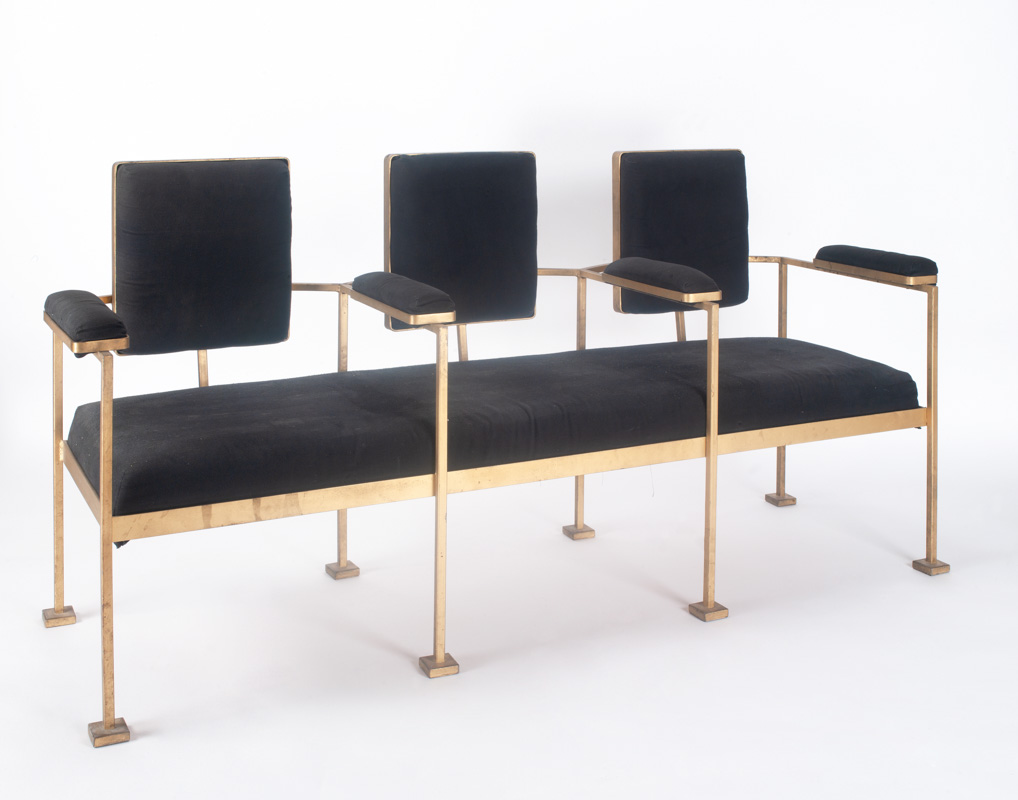 In ferro dipinto color oro, sedute in velluto, H. 88 x 162 x 50 cm