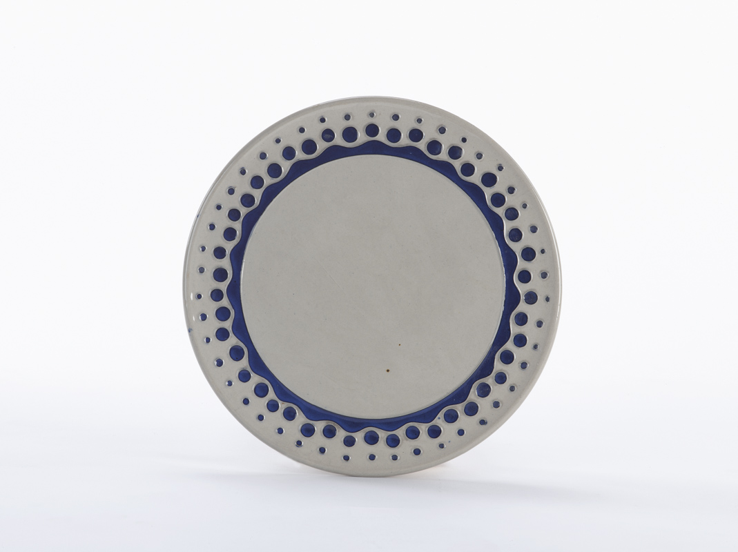in gres porcellanato smaltato con decoro blu in cobalto, h. 2,5, diam. 24 cm. Realizzato per la manifattura R. Merkelbach Grenzhausen